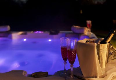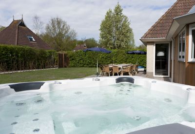 Extra grote tuin met, voor het ultieme wellnessgevoel, een vijfpersoons buitenspa.