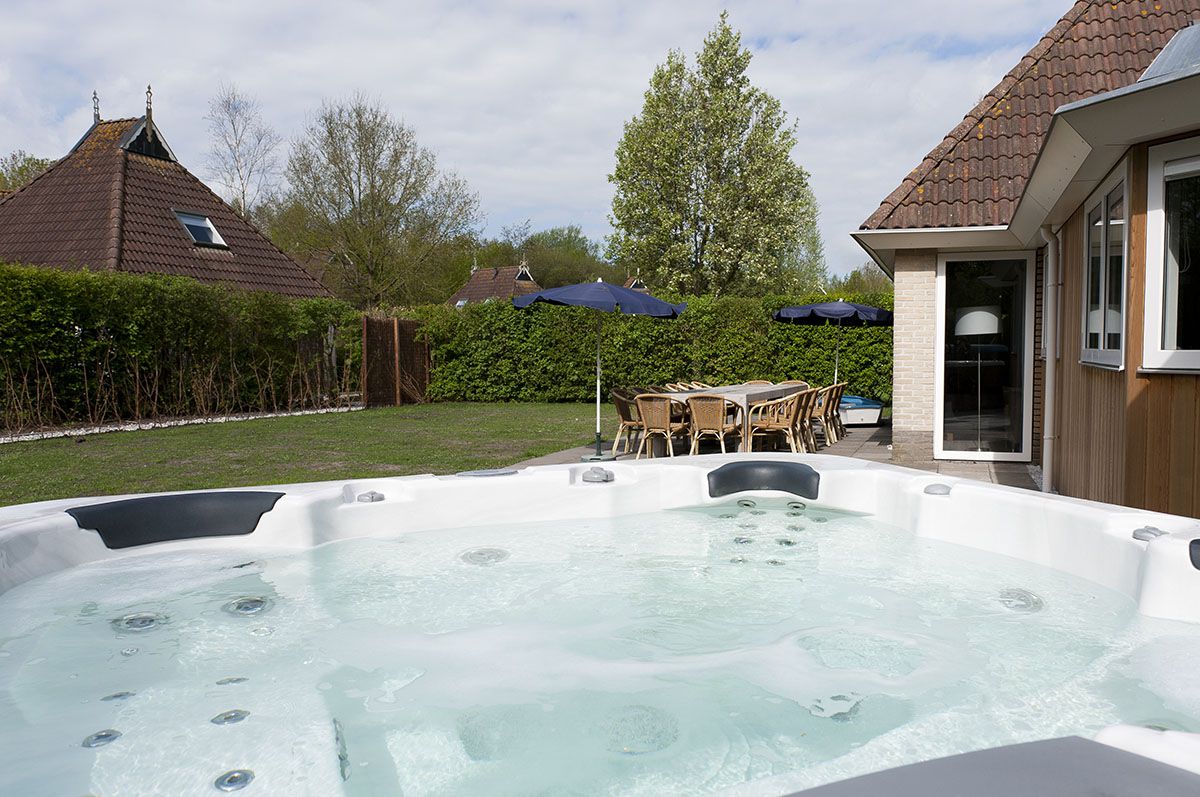 Extra grote tuin met, voor het ultieme wellnessgevoel, een vijfpersoons buitenspa.